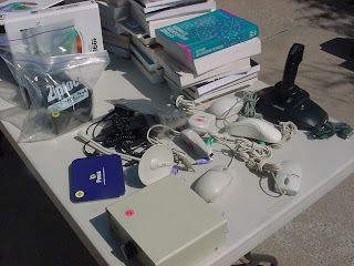 We held our annual garage sale over Labor Day weekend. L and I have decided that this is the last one for a while. As you might remember from last year (described here), we had a big one. Here’s a picture of a small part of the sale from last year: