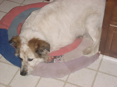 L got headed off back to the mountains earlier in the evening, so Molly is lying in her bed moping. Molly will mope for about 16 hours, then return to her normal bouncy self. The only hope of early recovery is the sighting of a squirrel in the yard. It’s amazing how dogs are observant enough to sense when one they love is getting ready to leave. Within an hour or so of L’s planned departure, Molly starts laying on the floor at L’s feet and watching L with sadness in her eyes. Then she gravitates to the garage door and watches as the people go back and forth. Then, when L leaves, she immediately heads to her bed and lays there, looking like the world has come to an end. So I leave you with this picture of Molly moping in her laundry room bed.