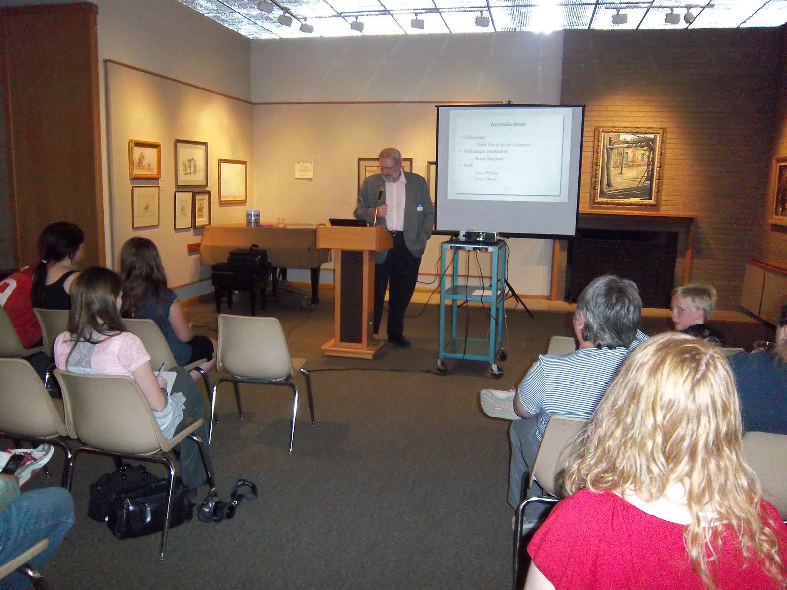First up, a picture of me talking to a couple of the volunteers and guests prior to the presentation. (And boy does this picture make me look BIG!)