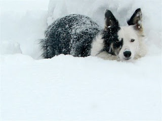 Huh? Moment – Why does Molly like to sit in the snow? She will use her nose and paws to create a snow hill in the yard, then climb up on the hill and sit, surveying her domain. When you call her to come in, she will disdainfully turn her head, give you the doggy eye, and radiate the “Why would I want to leave my throne to go in where it is warm?” vibe. I suspect she is waiting for this friend to come over and join her.