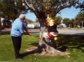 What you see above are some of the publicity photos used to hype the contest and generate ticket sales. Blue Skies seems to win most years, maybe because they have and avid and experienced sales staff (the volunteers from the group and the people they help). The year of these photos, it was a close race but we, the city council and myself, lost. Our embarrassing moment followed a few weeks after the duck float race: we had to enter the city council chambers at the start of an official meeting wearing cowboy hats and riding broom stick ponies while singing a certain western tune. Needless to say, the press was there with glee along with a pretty good size crew of Blue Skies supporters.