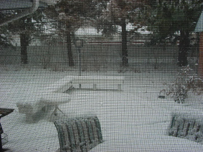 It started snowing around 6 am and kept it up for a good part of the day. The addition of the winds just made it all more harsh. The only thing keeping it from being a total white out was the fact that the snow was so wet that it stuck rather than blew once it hit something. At around 1pm this is how it looked: